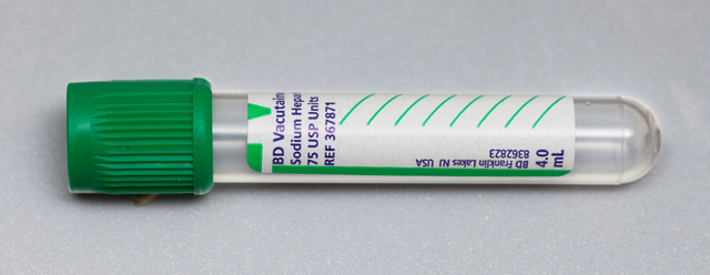 - Sodium Heparin Dark Green top tube 4.0